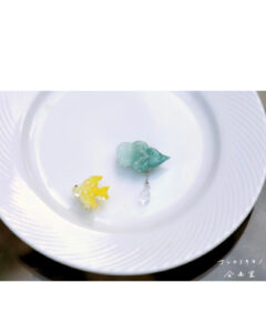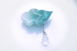 ガラス帯留め「彩告げ鳥」「雲にしずく」